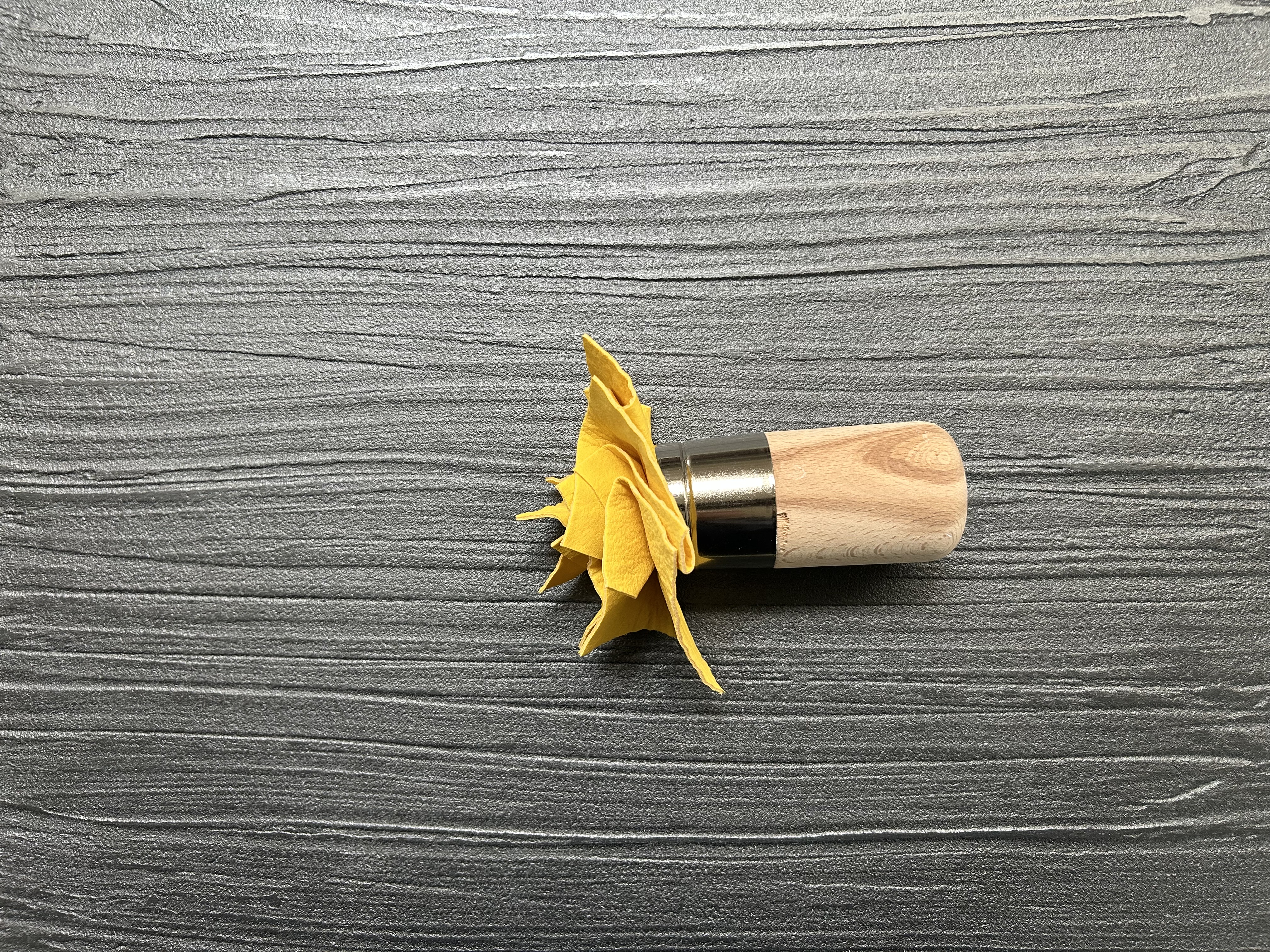 Preparare il supporto e applicare il Fondo M seguendo le indicazioni della sezione Design. Decorare la superficie con il tampone tondo, effettuando movimenti orizzontali per ricreare la trama ardesia.